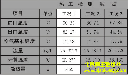 舉例:工況1:進水溫度90.34度,出水溫度82.17°,室內(nèi)溫度18°,參數(shù)計算值68,得出來的散熱量1455(瓦)。